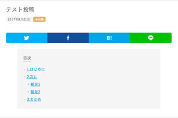 「NS 目次の自動作成」は、記事の目次を自動的に作ることができるプラグインです。投稿や固定ページの記事に、見出し1〜6(H1からH6)の見出しを設定すると、このように目次を自動生成してくれます。 「NS 目次の自動作成」…