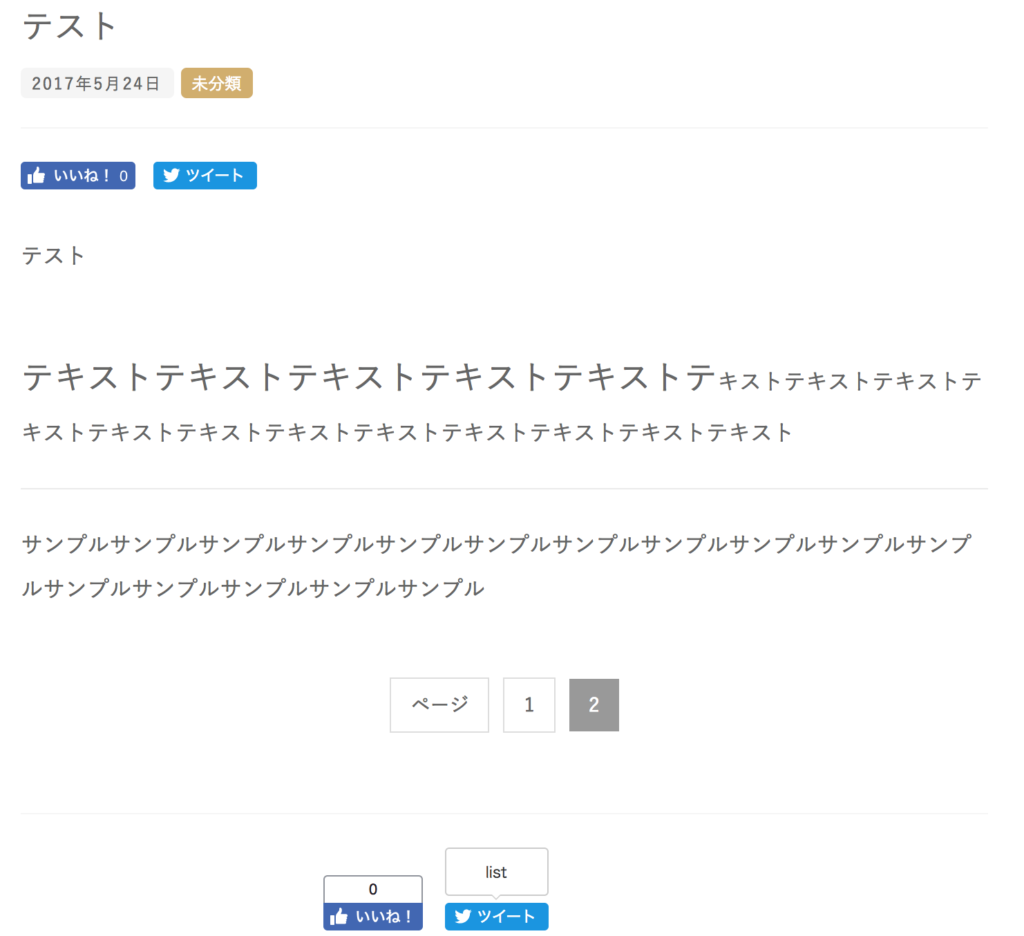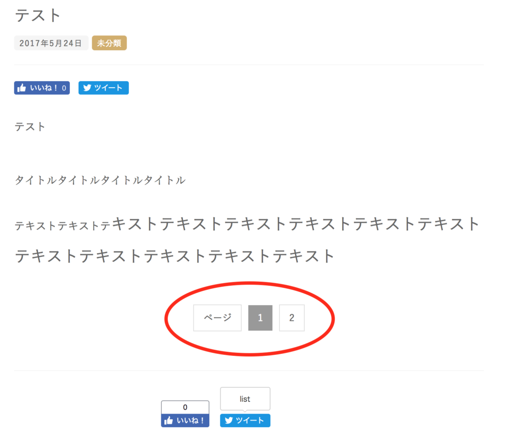 プレビューで確認すると、本文下部に、ページの切り替えボタンが表示されました。