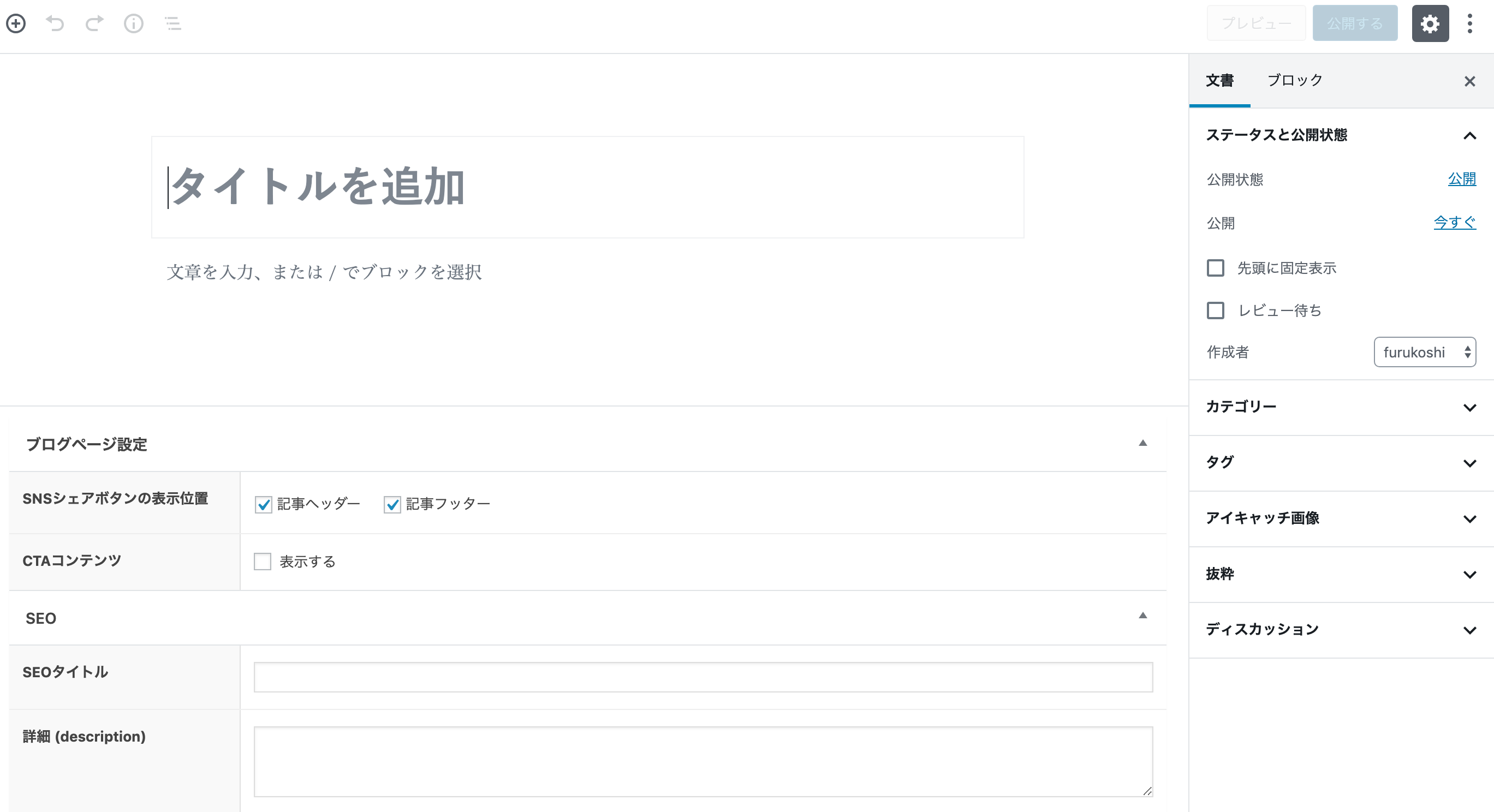 なんとなく、日ごろ見慣れた操作画面でしょうか。各種ブログサービスの編集画面も、このクラシックエディタに近いものです。