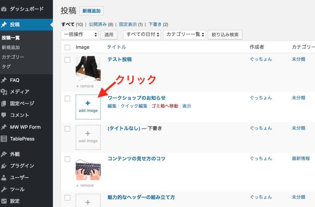 そこで、プラグイン「Easy Featured Images」では、投稿一覧の画面からアイキャッチ画像を素早く設定することができます。