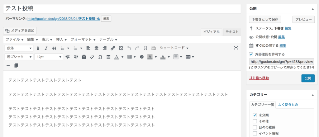 WordPress管理画面>投稿>新規追加