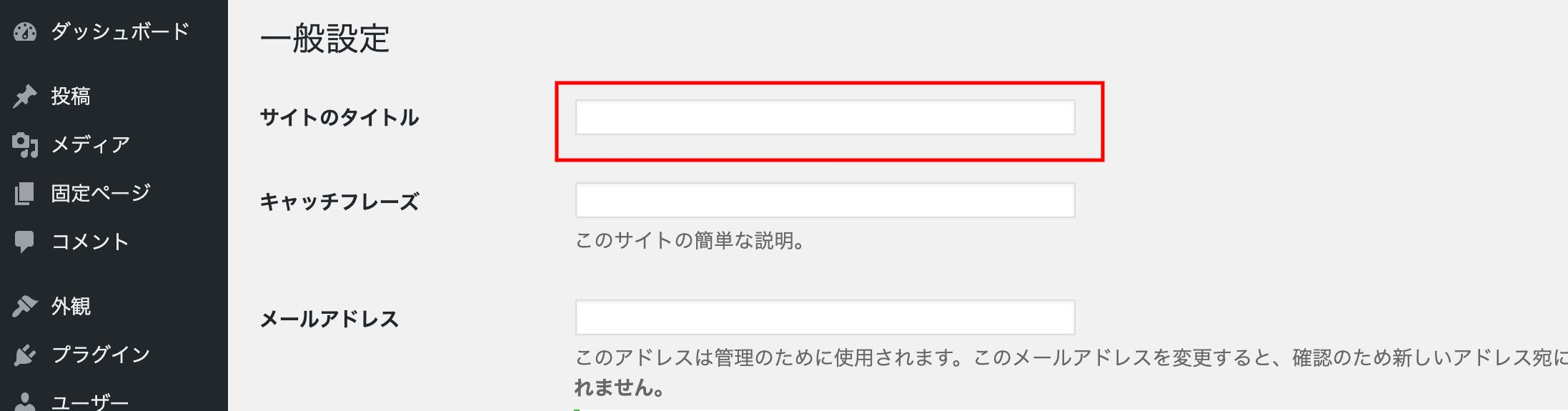 サイト名はWordPressをインストールした際に設定した名称が表示されています。変更箇所は以下の通りです。