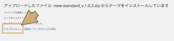 テーマが追加できたら、有効化をします。とその前に、見た目を確認しておきましょう。